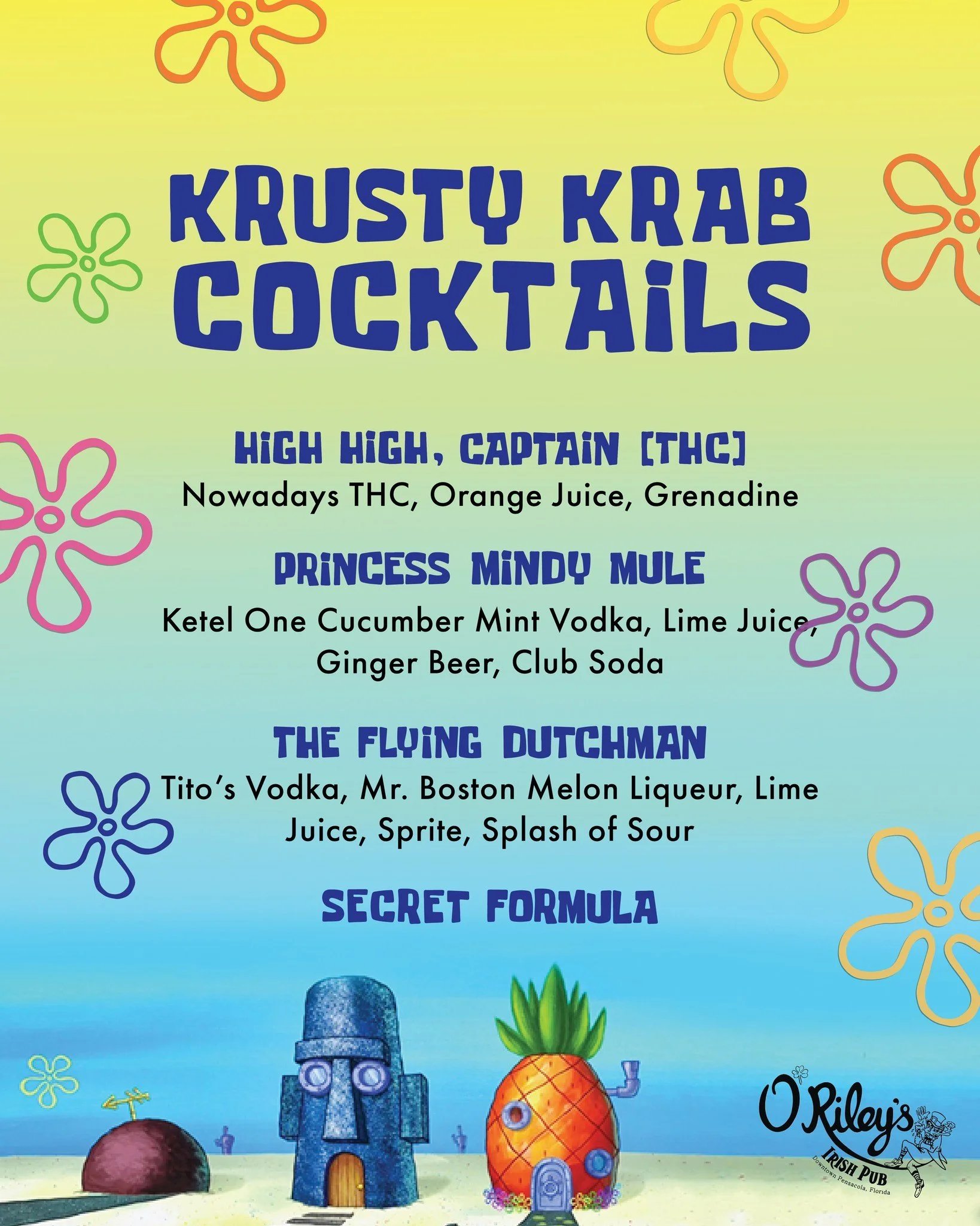 Pensacon fun officially bubbles up at O’Riley’s beginning Wednesday, February 18 with Pensacon themed trivia, followed by Bikini Bottom College Night, a Pensacon themed Gallery Night event, and closing with a Jellyfish Jam dance party.