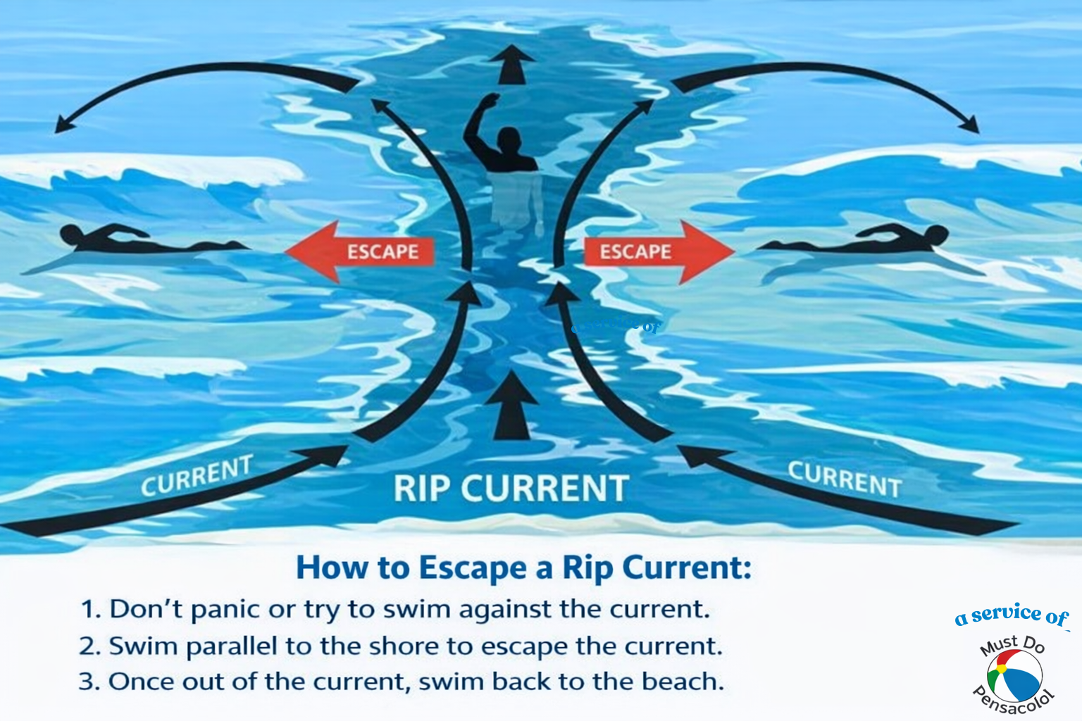 Rip currents are one of the most common water hazards at Pensacola Beach and a leading cause of beach rescues every year. Last April, lifeguards and emergency teams pulled nearly 50 people from the water over a single weekend due to dangerous currents.